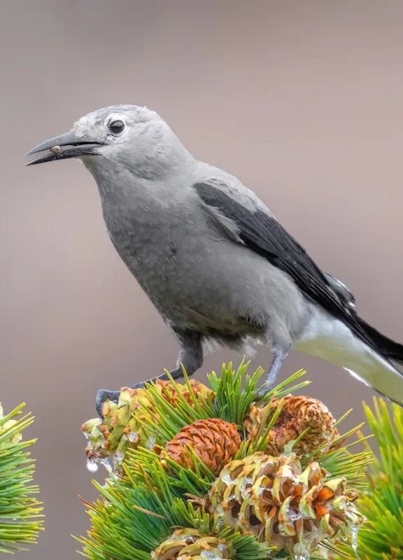 Grey and black aerial acrobat. Enjoys high-altitude mountain adventures and high-protein snacks. Remembers where all the seeds are buried.