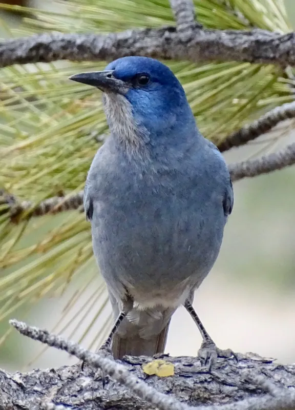 Mischievous bold, blue forager. Prefers traveling with a rowdy flock. Obsessed with gathering and storing pine nuts.
